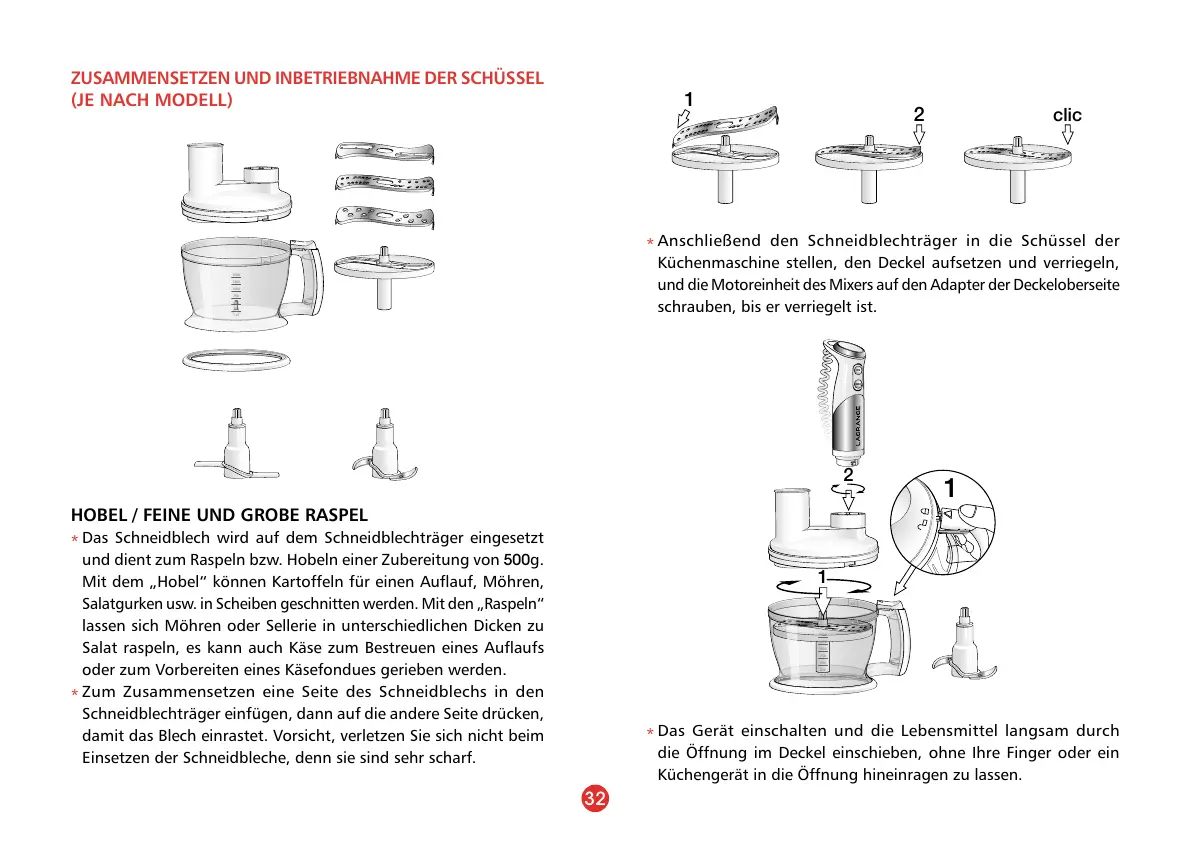 Einsetzen der Schneidbleche, denn sie sind sehr scharf.