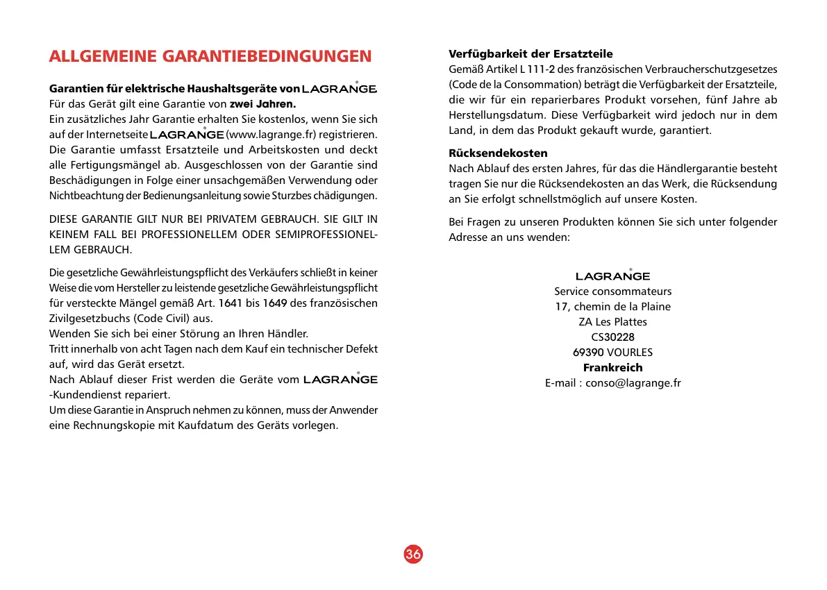 auf der Internetseite (www.lagrange.fr) registrieren.