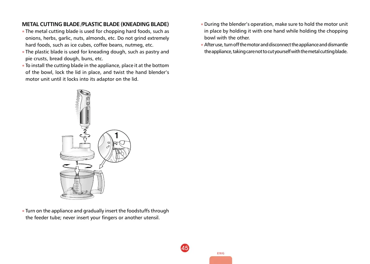 the appliance, taking care not to cut yourself with the metal cutting blade.