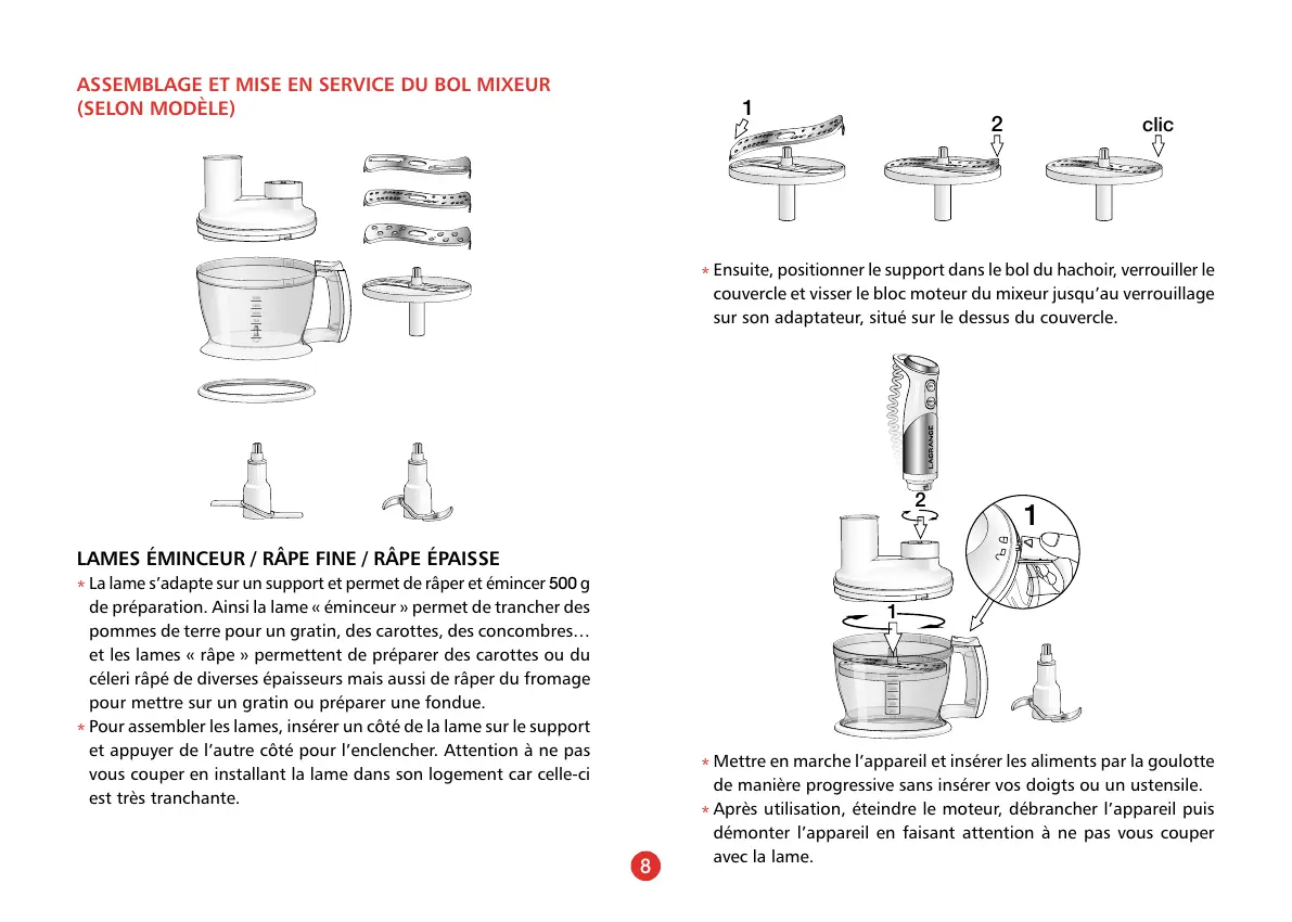 couvercle et visser le bloc moteur du mixeur jusqu’au verrouillage