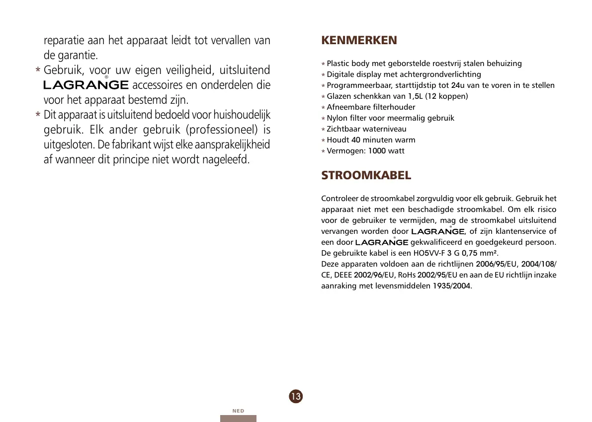 Dit apparaat is uitsluitend bedoeld voor huishoudelijk