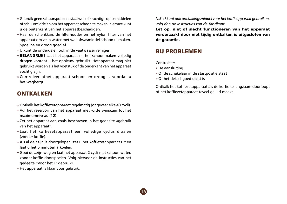 N.B. U kunt ook ontkalkingsmiddel voor het kofeapparaat gebruiken,