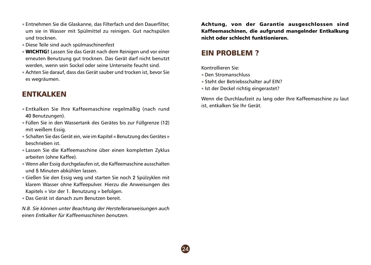 klarem Wasser ohne Kaffeepulver. Hierzu die Anweisungen des