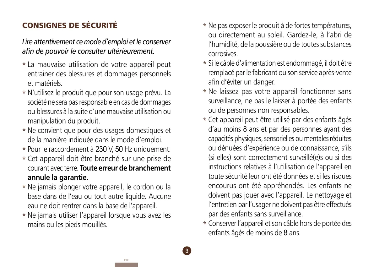Pour le raccordement à 230 V, 50 Hz uniquement.