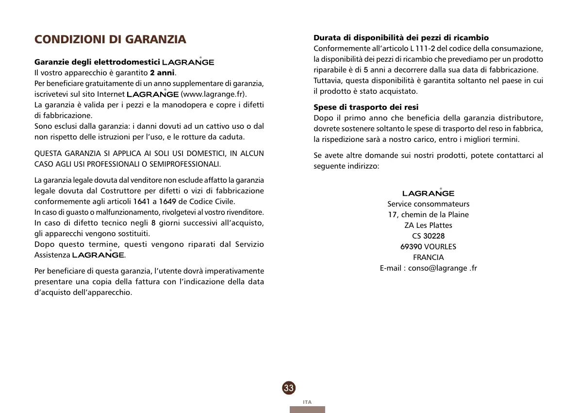 Per beneciare di questa garanzia, l’utente dovrà imperativamente