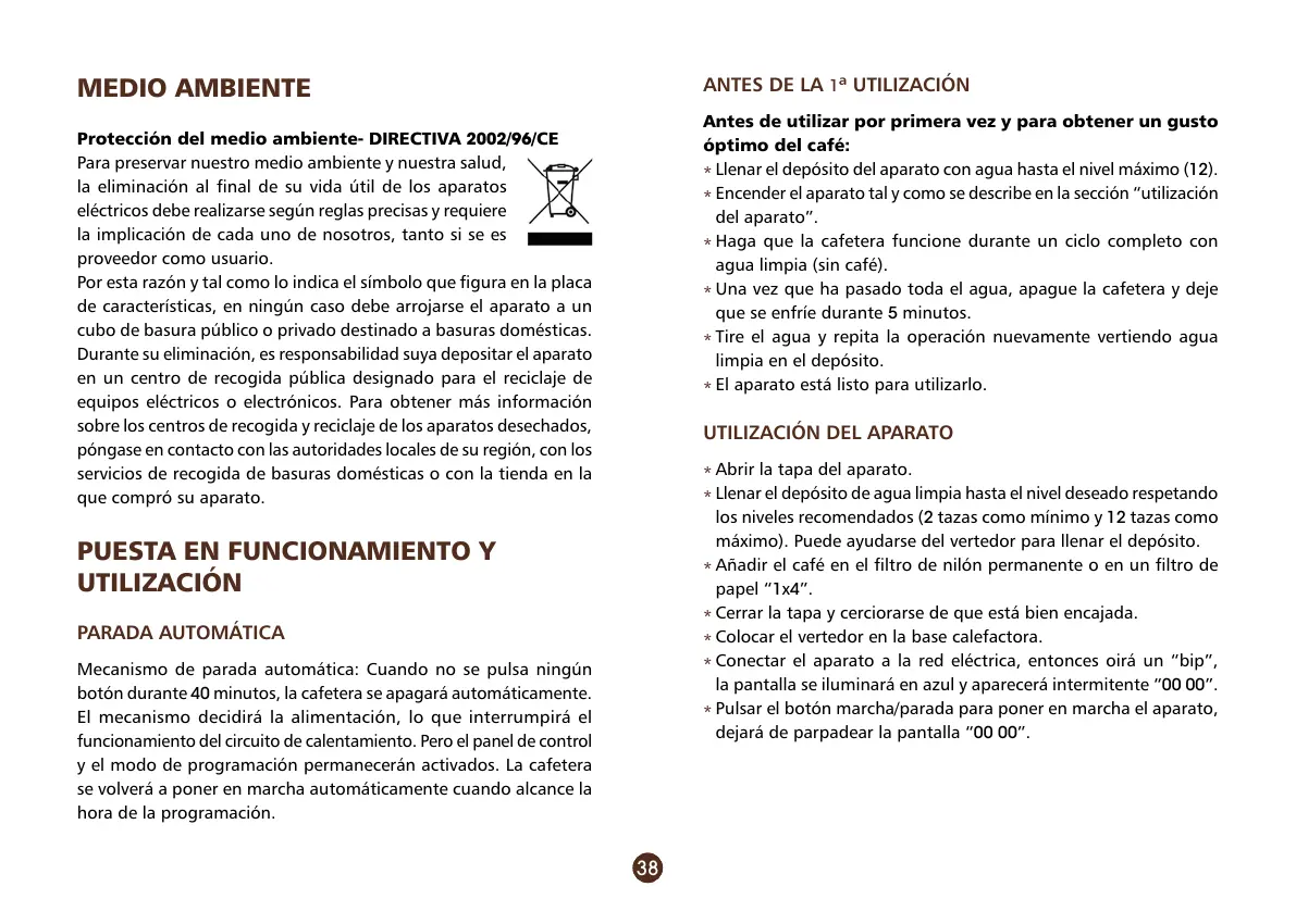 botón durante 40 minutos, la cafetera se apagará automáticamente.