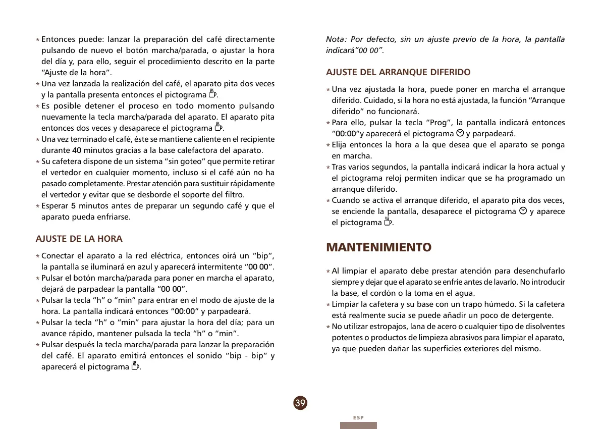 hora. La pantalla indicará entonces “00:00” y parpadeará.
