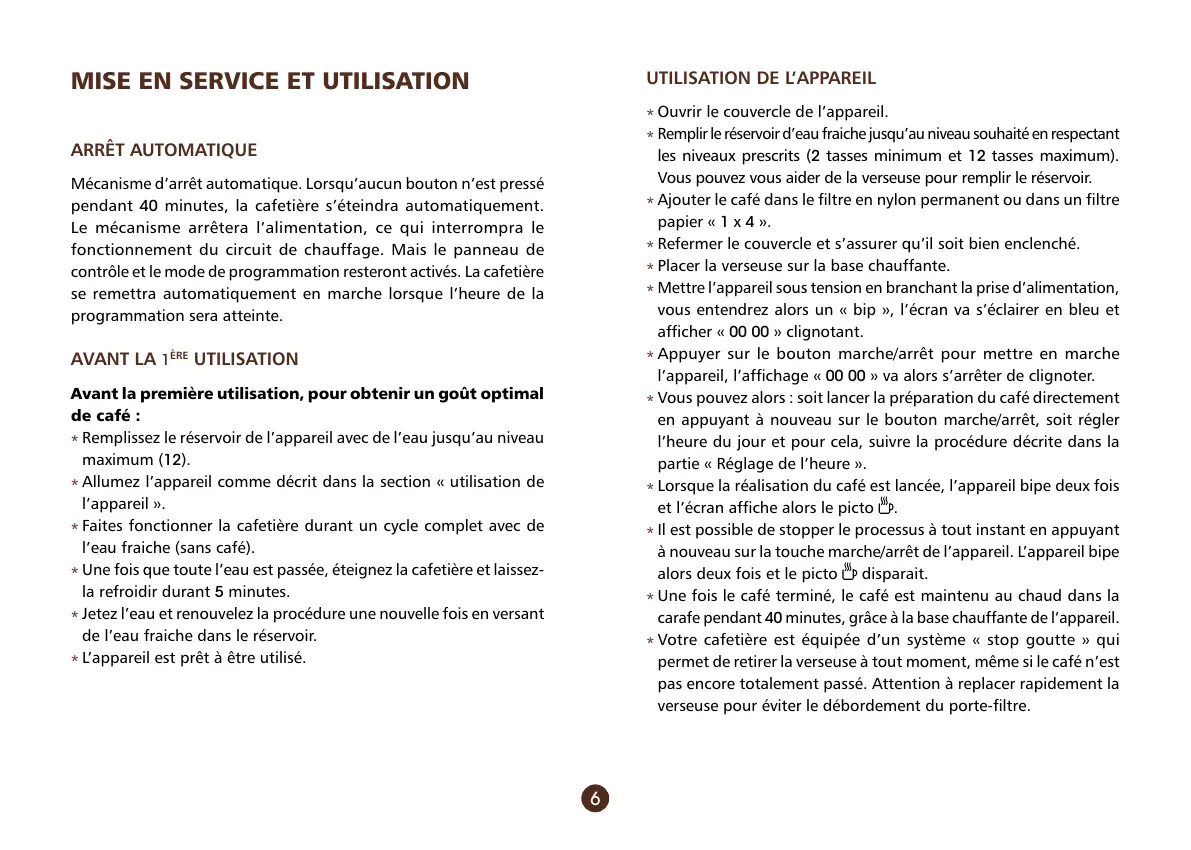 minutes, la cafetière s’éteindra automatiquement.