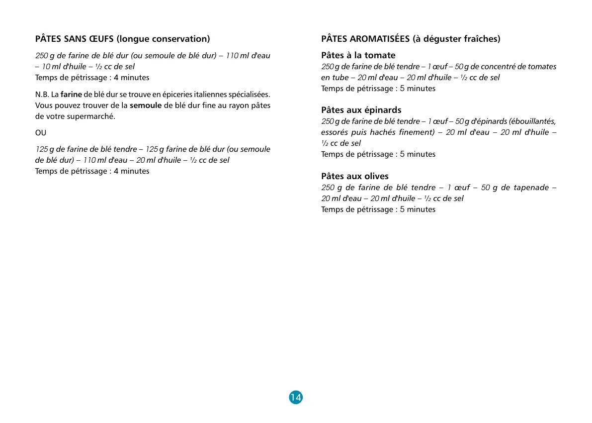 N.B. La farine de blé dur se trouve en épiceries italiennes spécialisées.