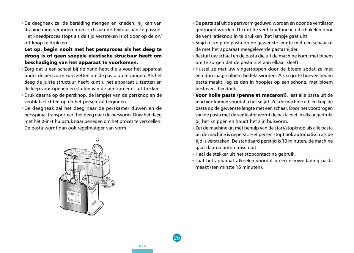 Laat het apparaat afkoelen voordat u een nieuwe lading pasta