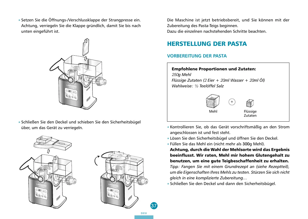 benutzen, um eine gute Teigbeschaffenheit zu erhalten.