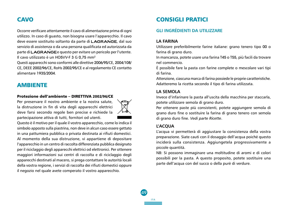 Utilizzare preferibilmente farine italiane: grano tenero tipo 00 o