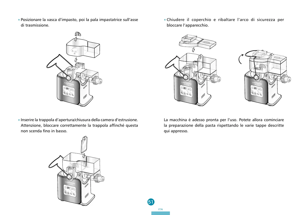 Posizionare la vasca d’impasto, poi la pala impastatrice sull’asse