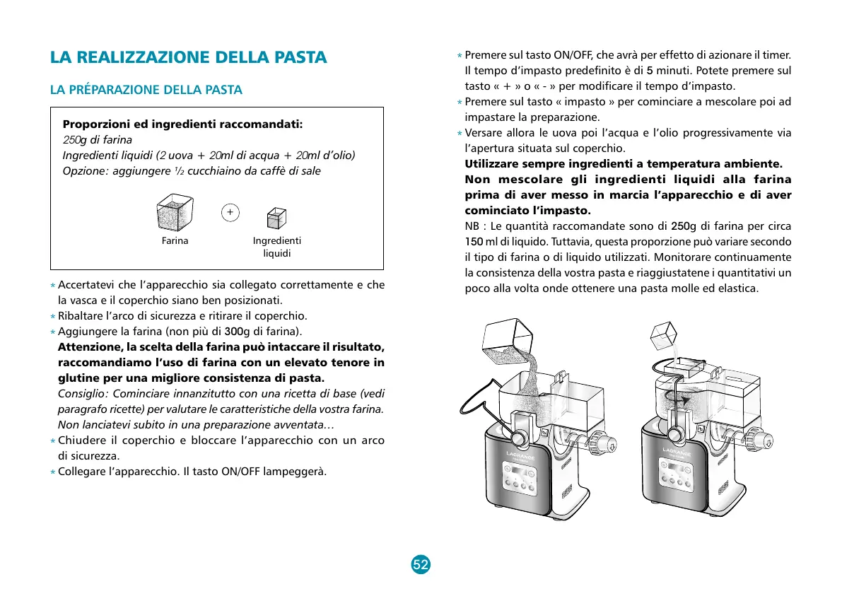 NB : Le quantità raccomandate sono di 250g di farina per circa