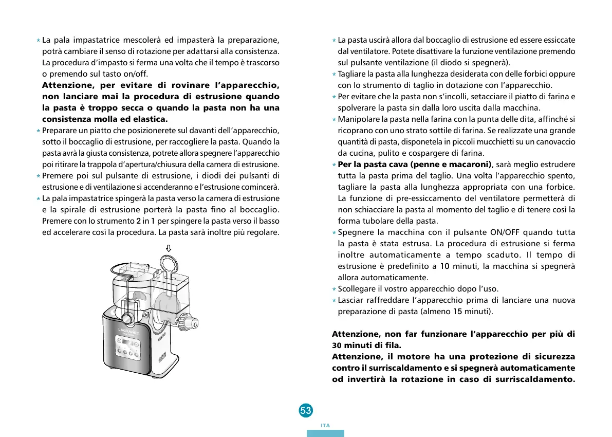 tutta la pasta prima del taglio. Una volta l’apparecchio spento,