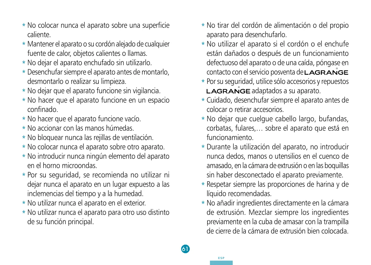 No utilizar nunca el aparato para otro uso distinto
