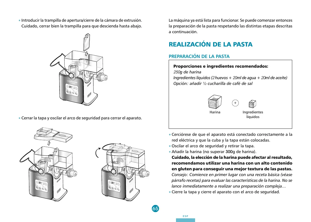 Cerrar la tapa y oscilar el arco de seguridad para cerrar el aparato.