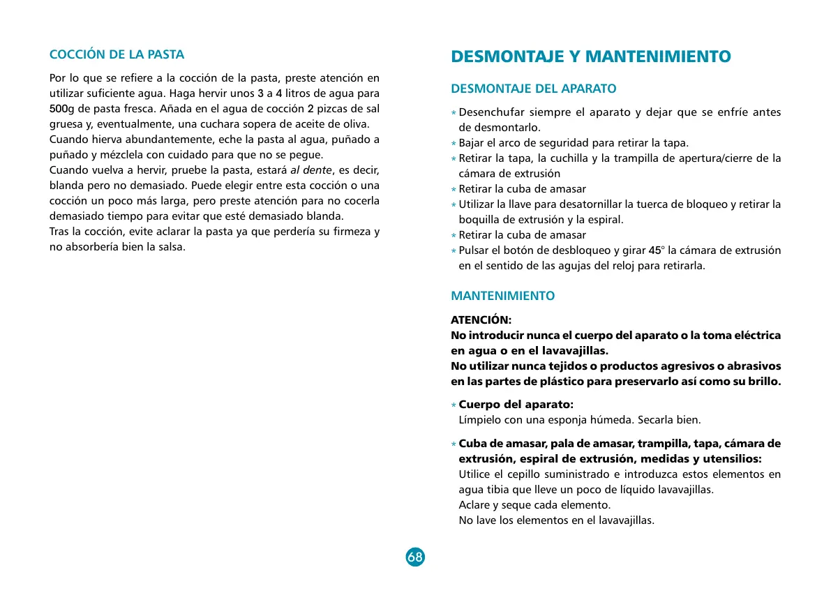 Por lo que se reere a la cocción de la pasta, preste atención en