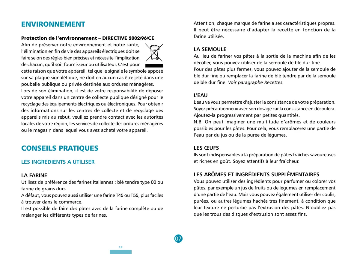 leur texture ne perturbe pas l’extrusion des pâtes. N’oubliez pas