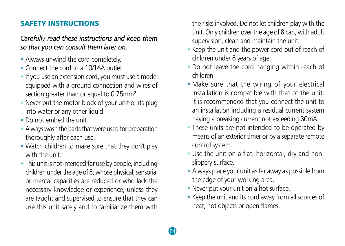 Never put the motor block of your unit or its plug