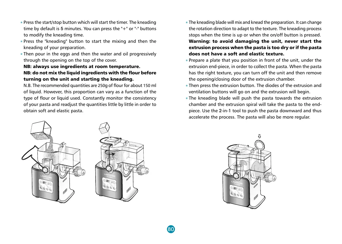 extrusion end-piece, in order to collect the pasta. When the pasta