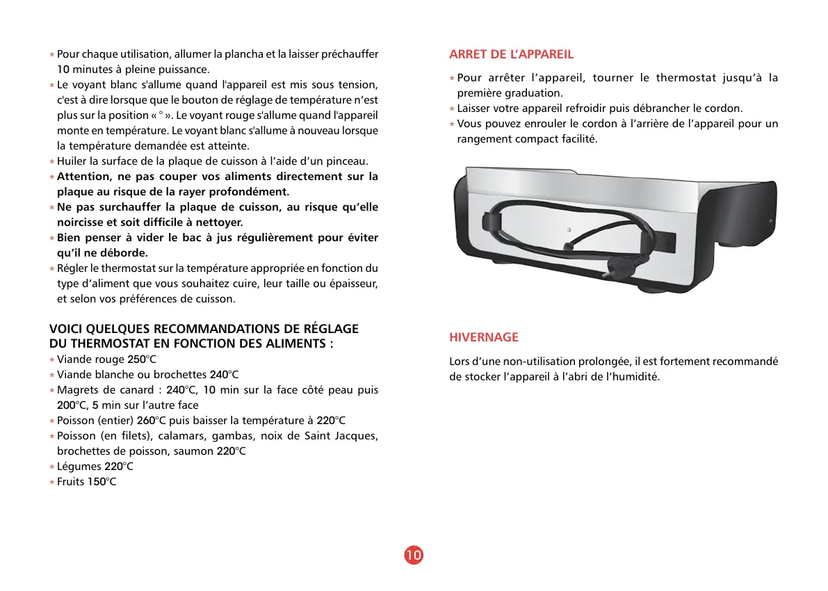 Pour chaque utilisation, allumer la plancha et la laisser préchauffer