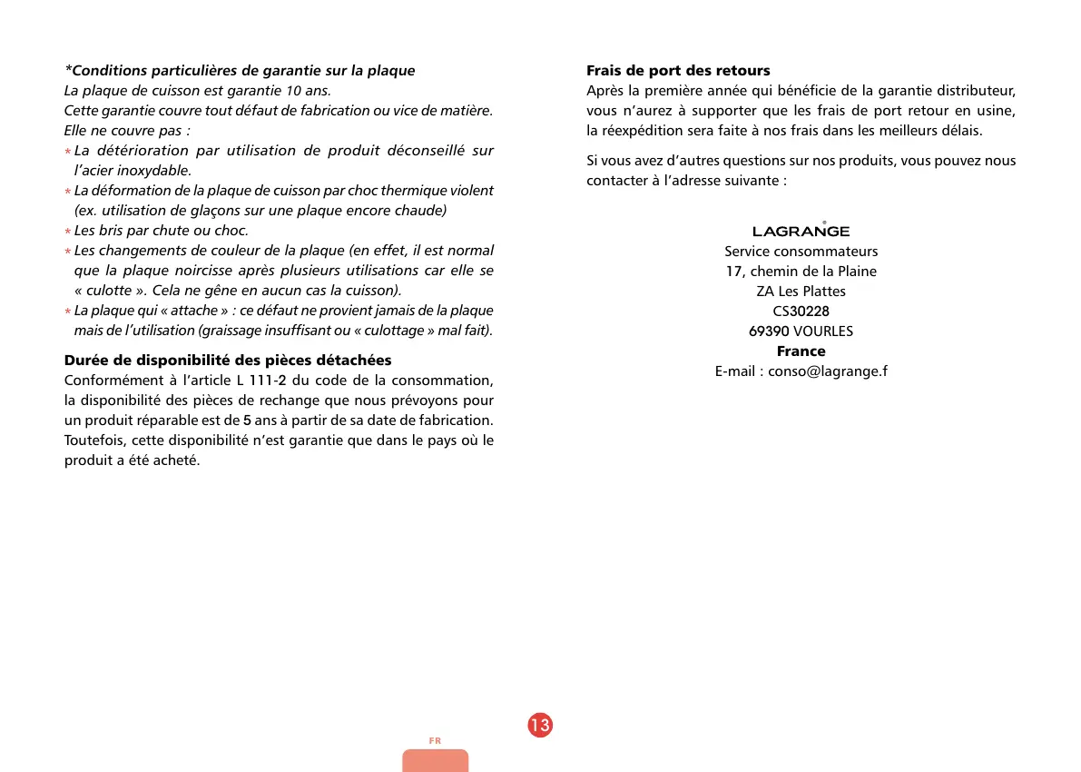 Cette garantie couvre tout défaut de fabrication ou vice de matière.