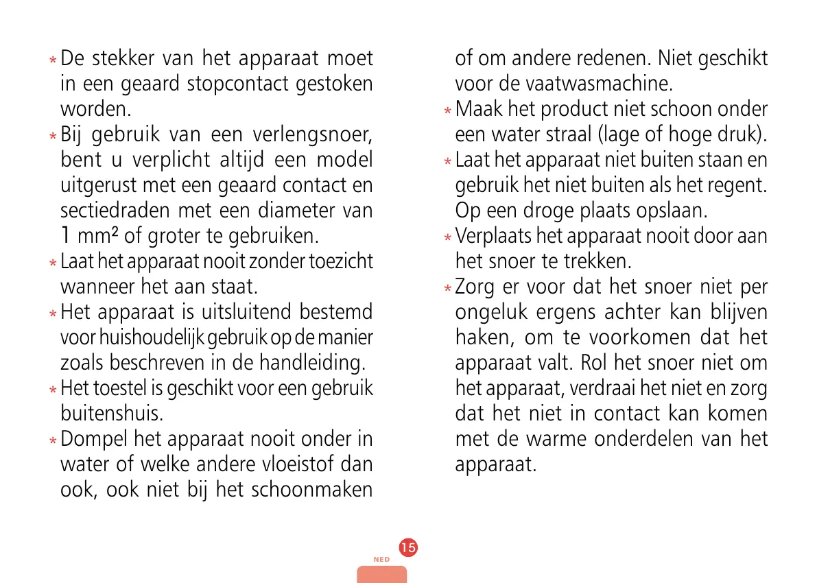 apparaat valt. Rol het snoer niet om
