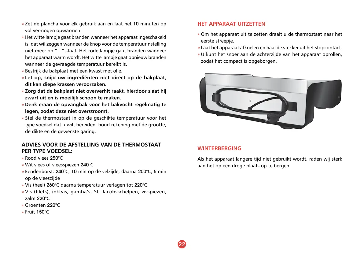Zorg dat de bakplaat niet oververhit raakt, hierdoor slaat hij