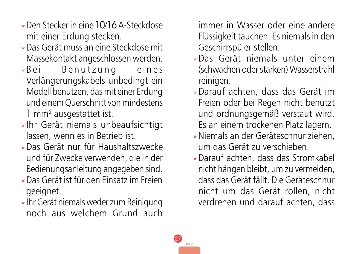 Niemals an der Geräteschnur ziehen,