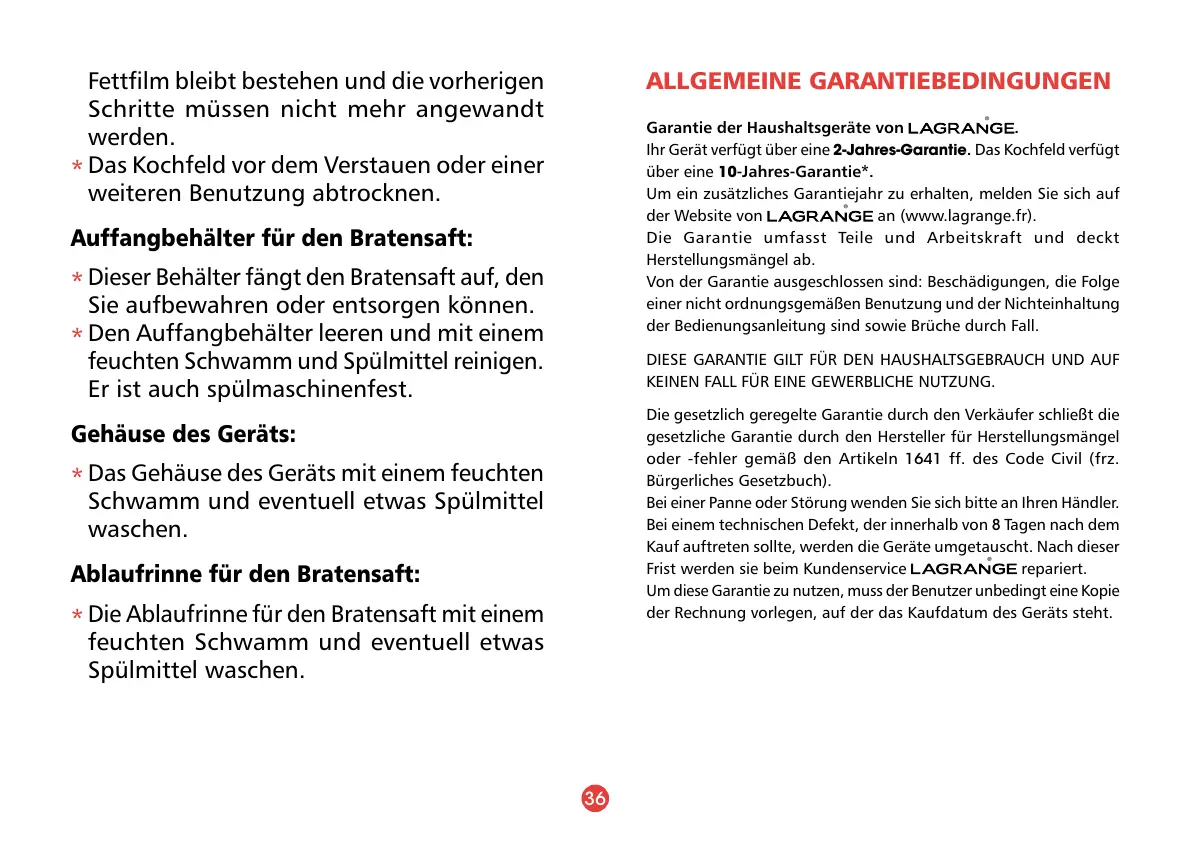Ihr Gerät verfügt über eine 2-Jahres-Garantie. Das Kochfeld verfügt