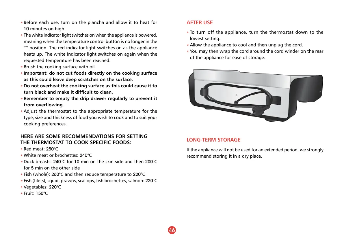 Red meat: 250°C