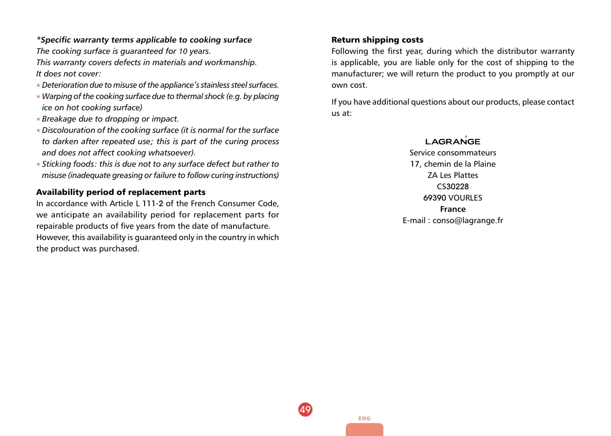 Deterioration due to misuse of the appliance’s stainless steel surfaces.