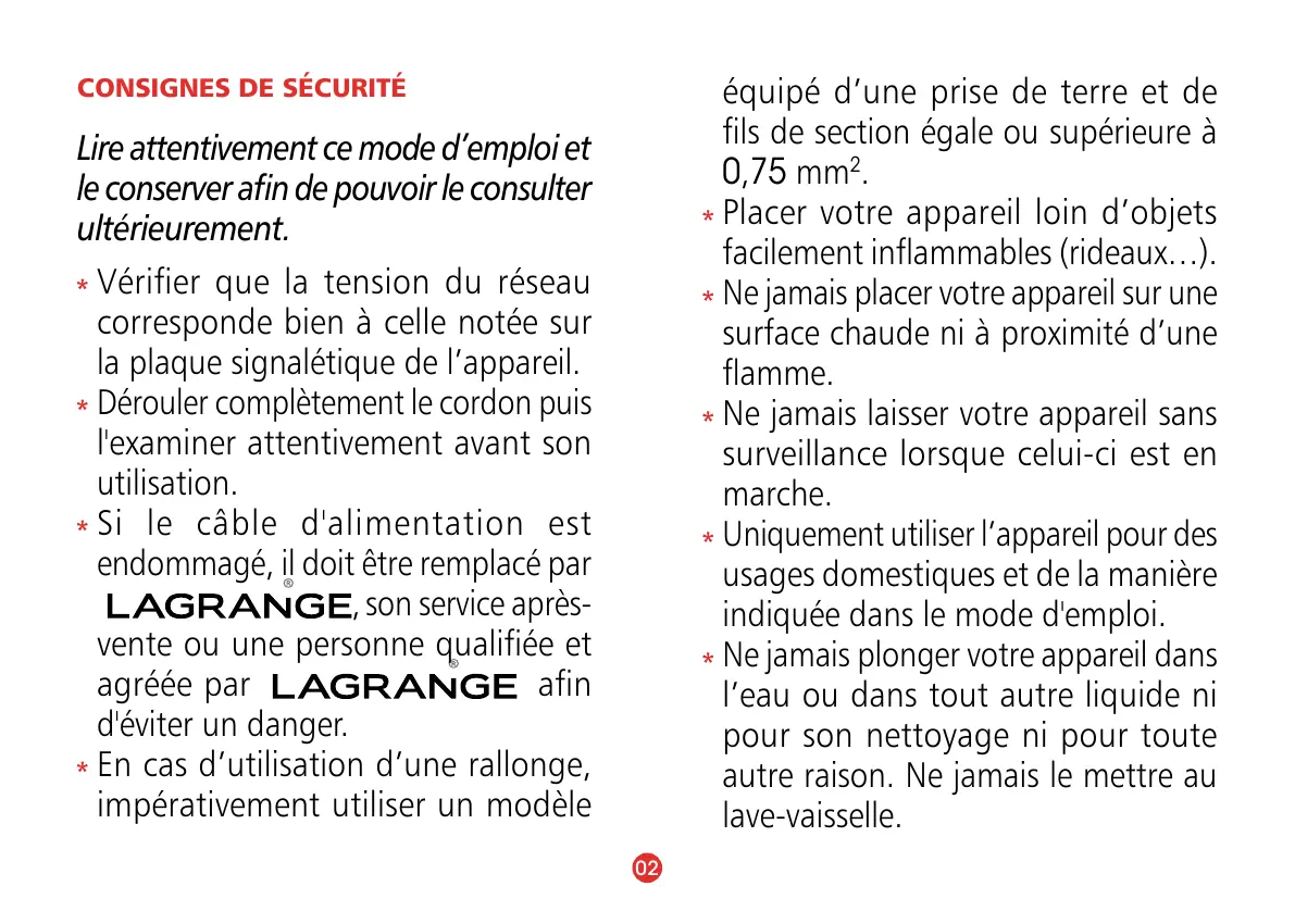 CONSIGNES DE SÉCURITÉ
