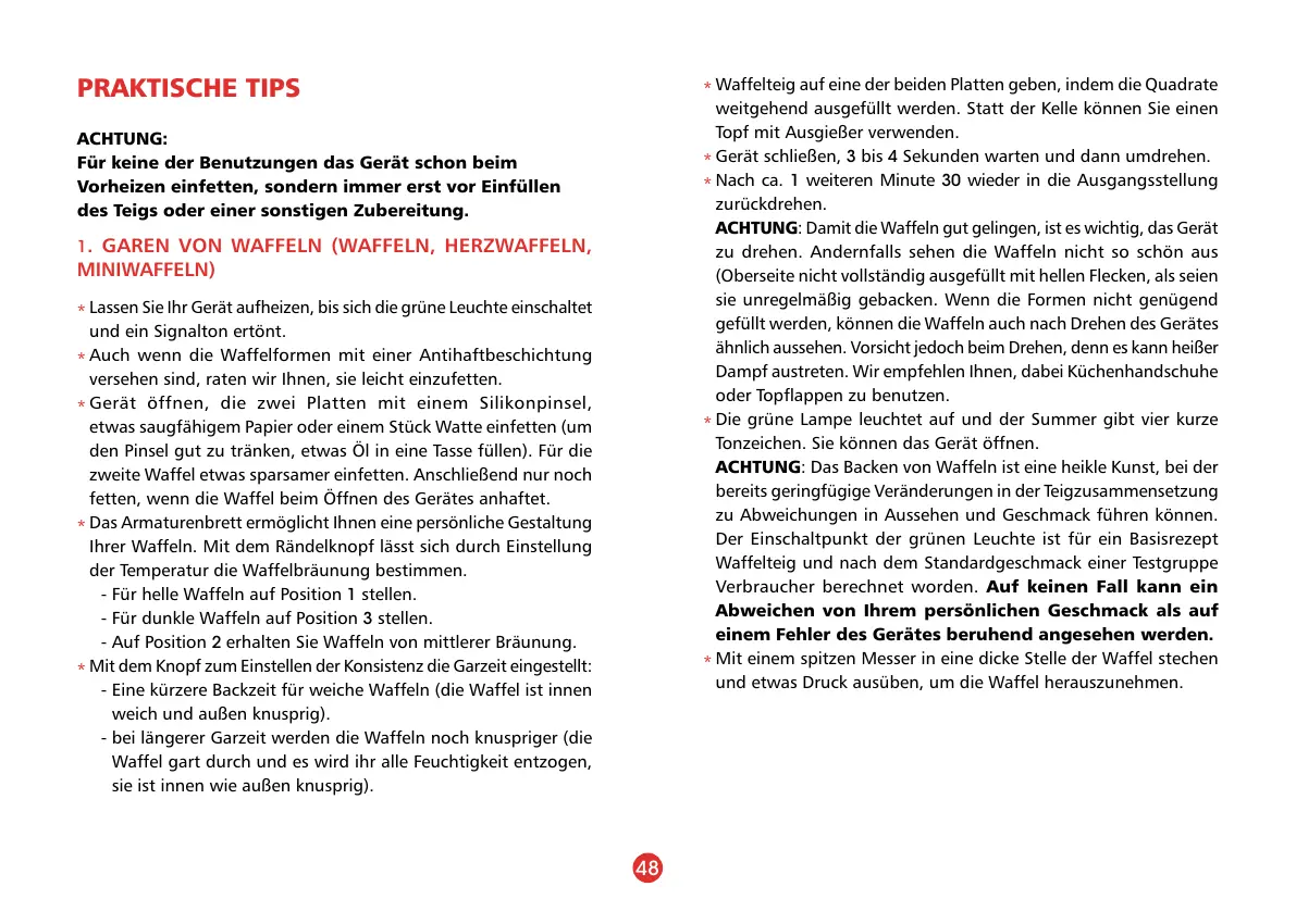 ACHTUNG: Damit die Waffeln gut gelingen, ist es wichtig, das Gerät