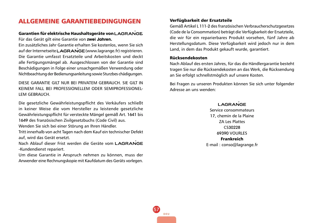(Code de la Consommation) beträgt die Verfügbarkeit der Ersatzteile,