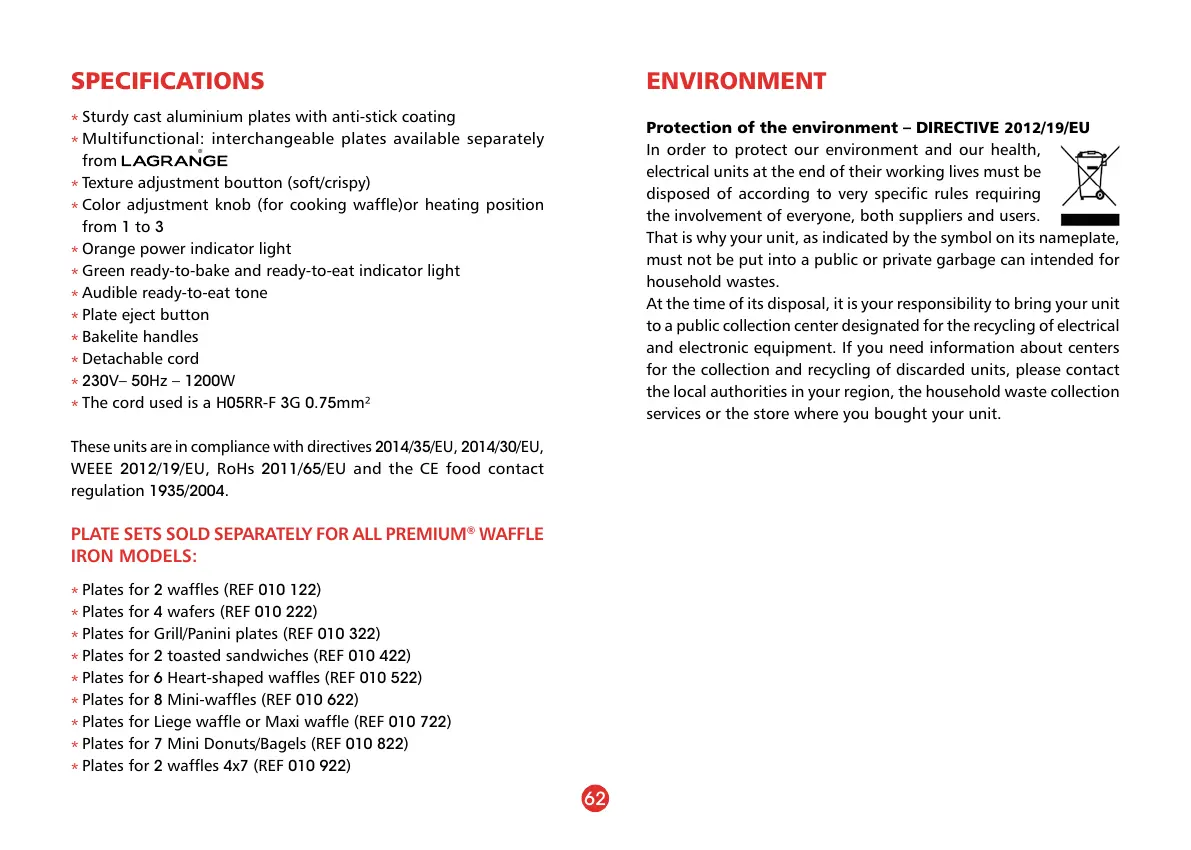 WEEE 2012/19/EU, RoHs 2011/65/EU and the CE food contact
