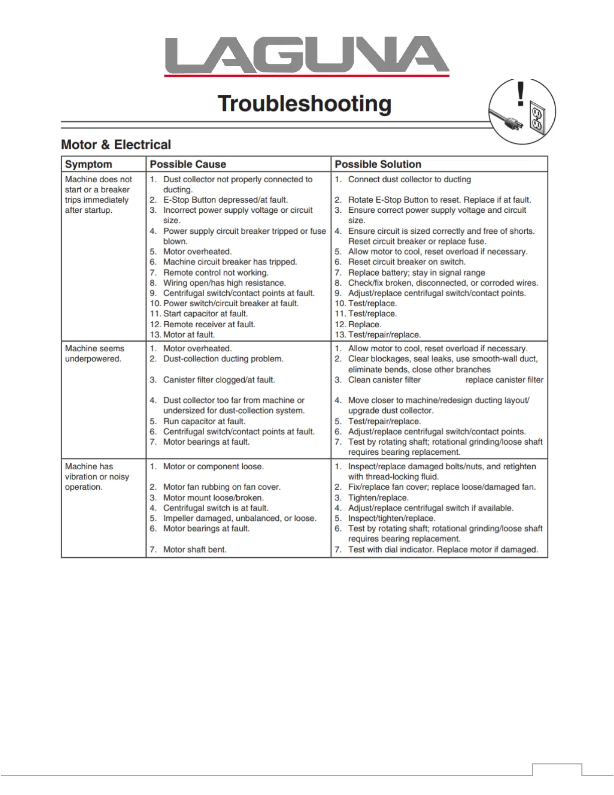 5. Motor overheated. 5. All