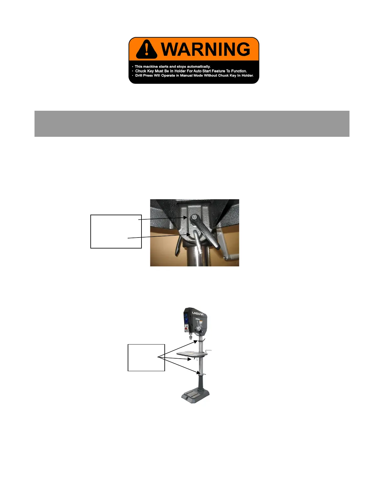 table, loosen the three Column Locks and rotate the table, making sure the Rack and Locks rotate with