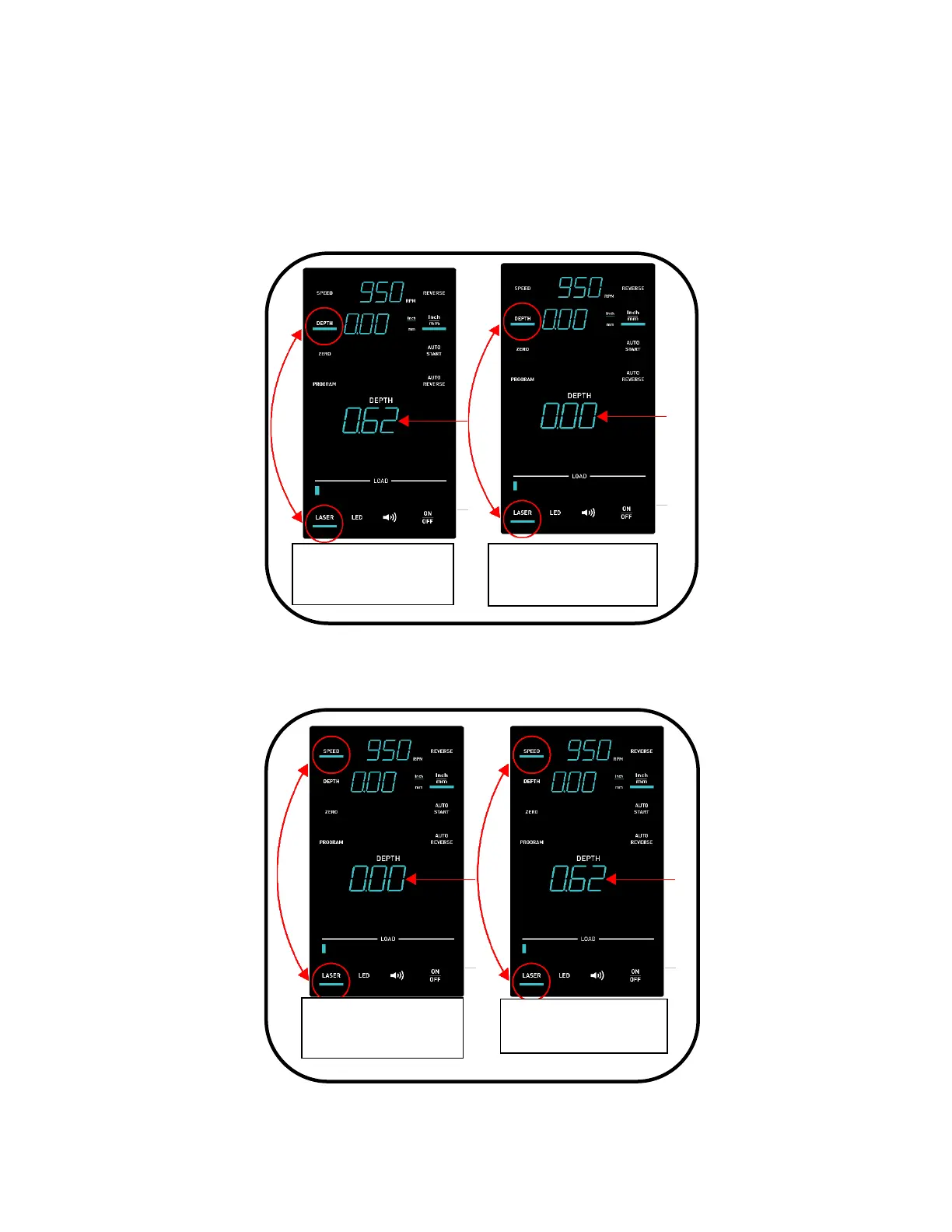 simultaneously press the Depth button and the Laser button momentarily and then release.