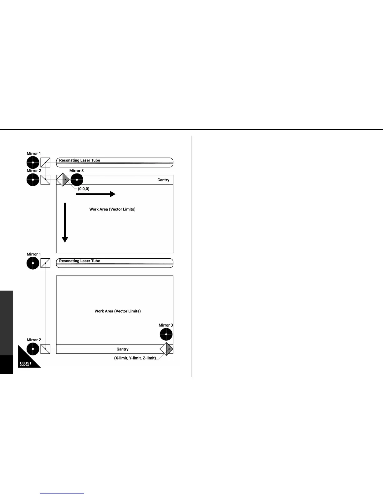 7. Position the gantry and laser head assembly in the (x-limit, Y-limit) position.