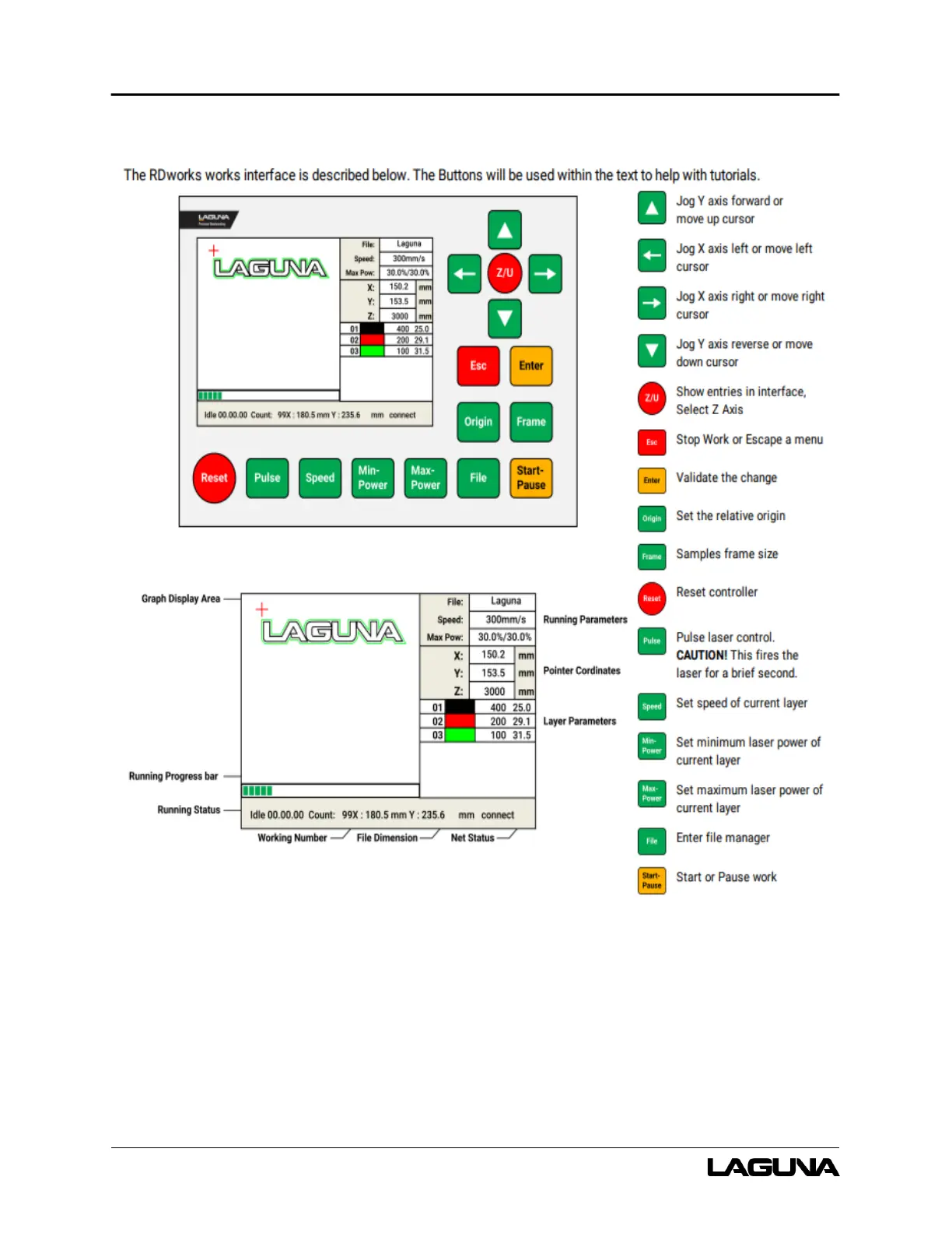 Running Parameters – Displays the running file’s file number, speed, max power, etc.