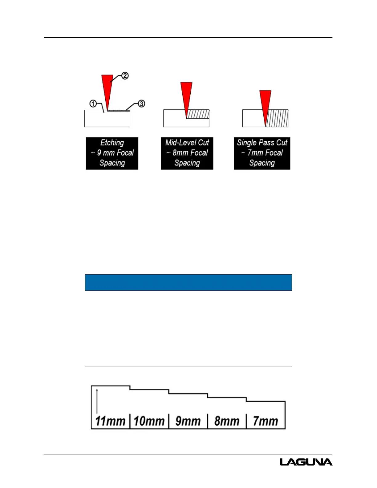 depth of that workpiece. It is recommended that you experiment with focal spacing prior to