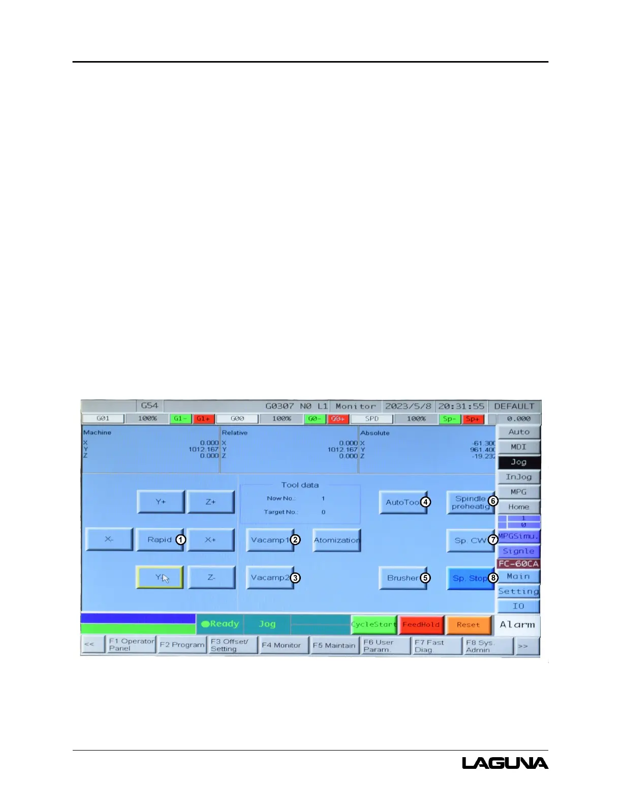 Figure 6-4 illustrates the Jog interface screen and commonly used buttons.