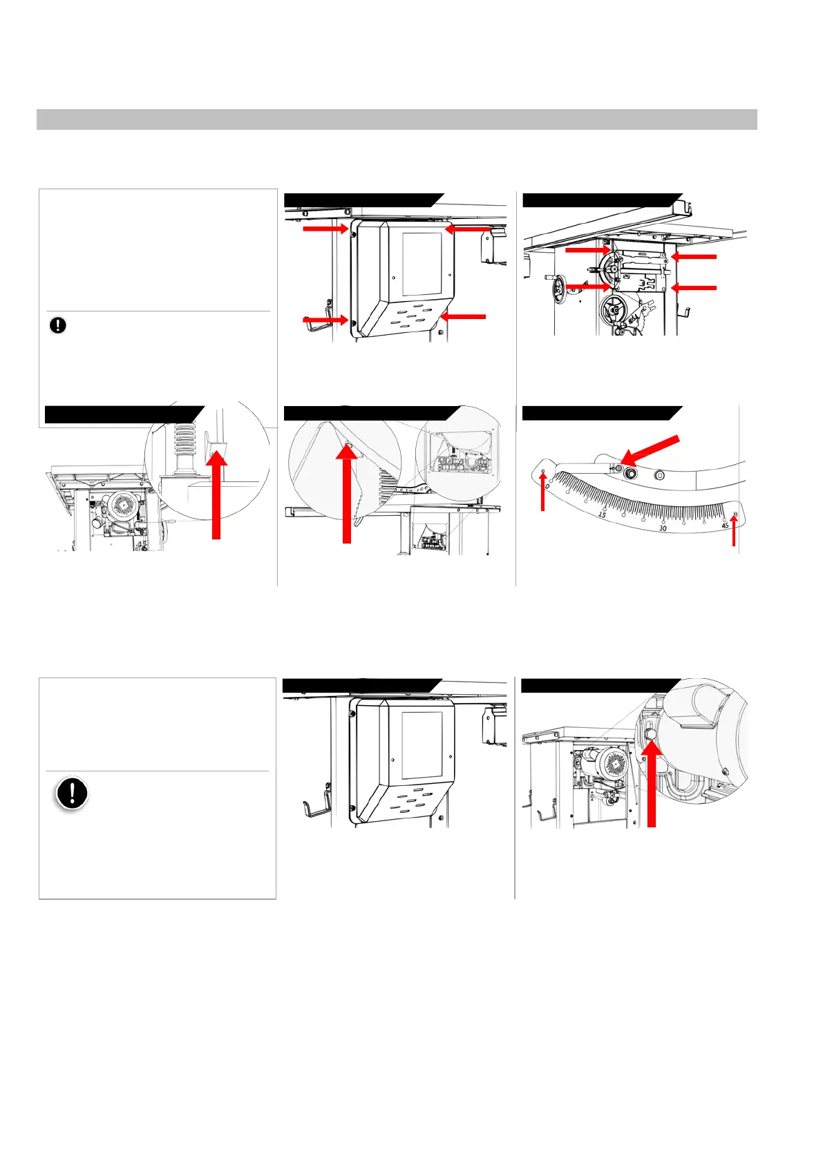 You can check the arbor (blade) tilt limits with an angle finder or 45-degree triangle. If these limits are not within 0 degrees and 45 degrees, use