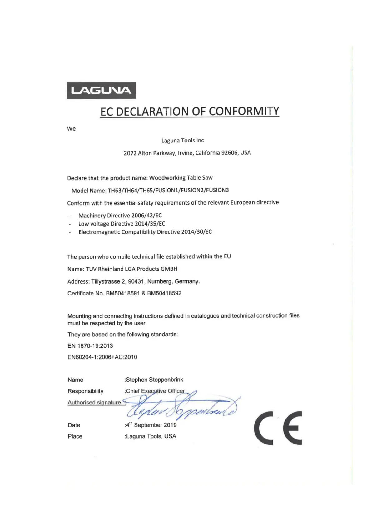 laguna Fusion 2 - EC Declaration of Conformity
