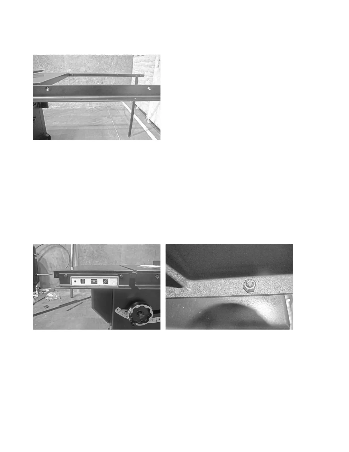 Align the left front rail’s bolt holes with the bolt holes on the front of the table saw.