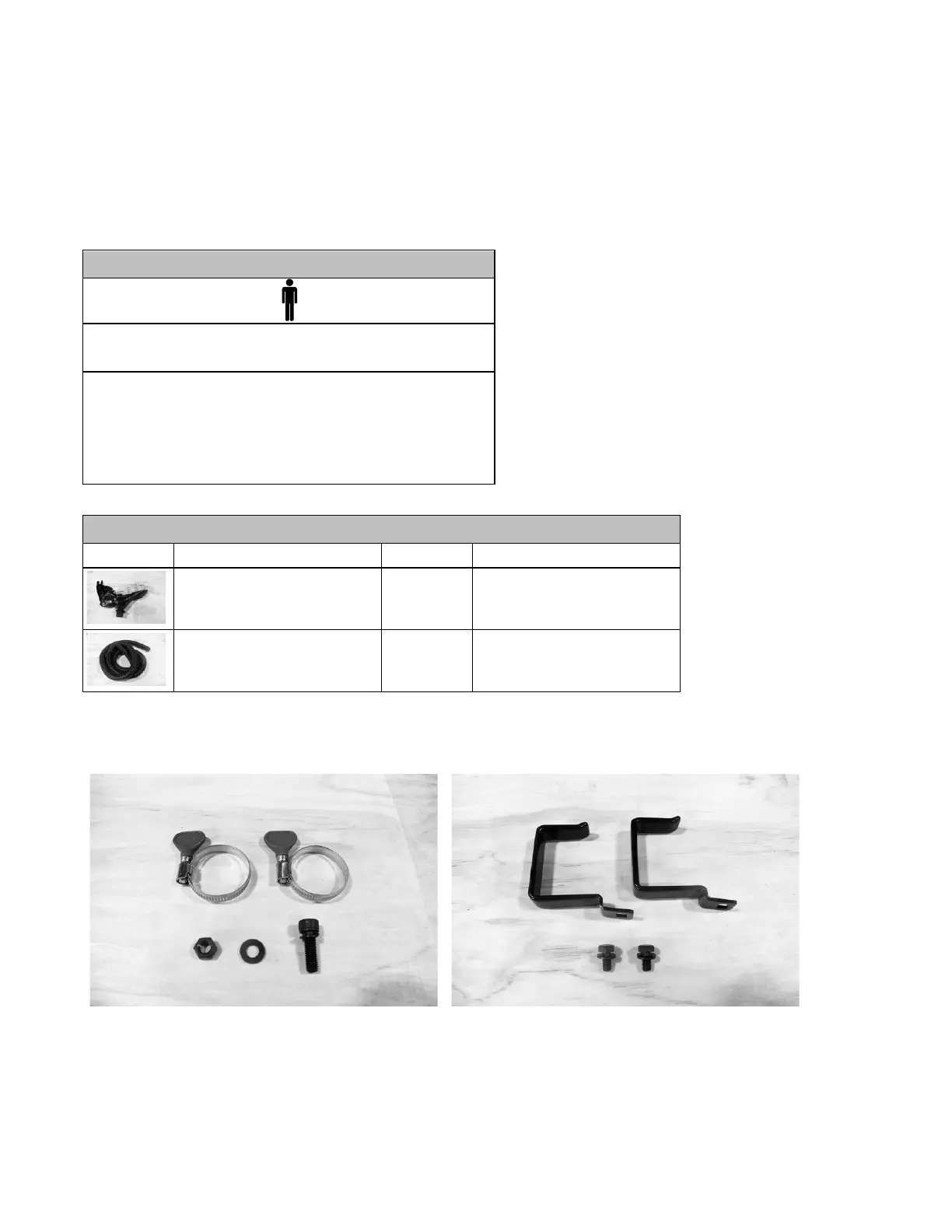 Band clamp with hex bolt, flat washer, and hex nut. Fence hooks and hex bolts with flat washers.