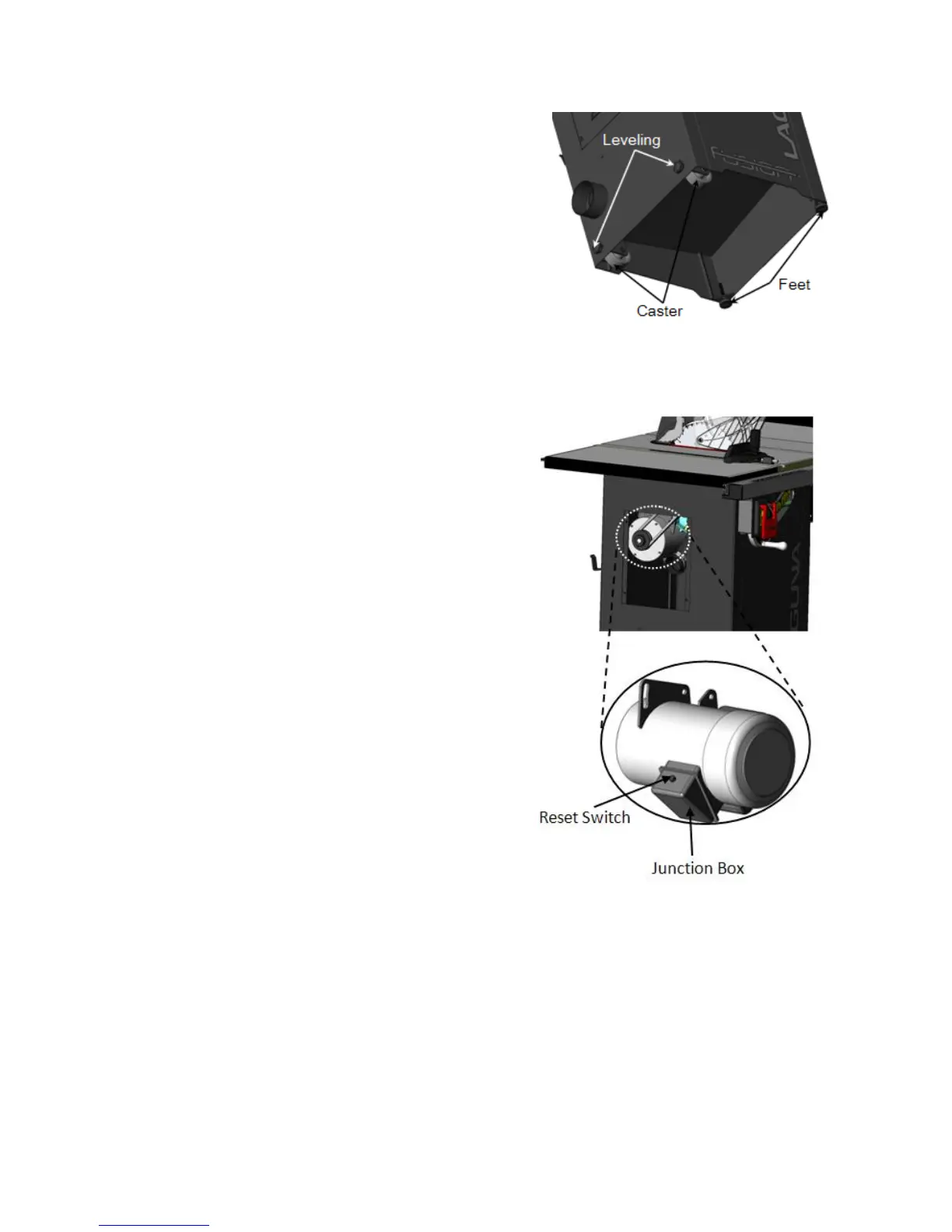 leveling adjustors and (2) adjustable feet. To