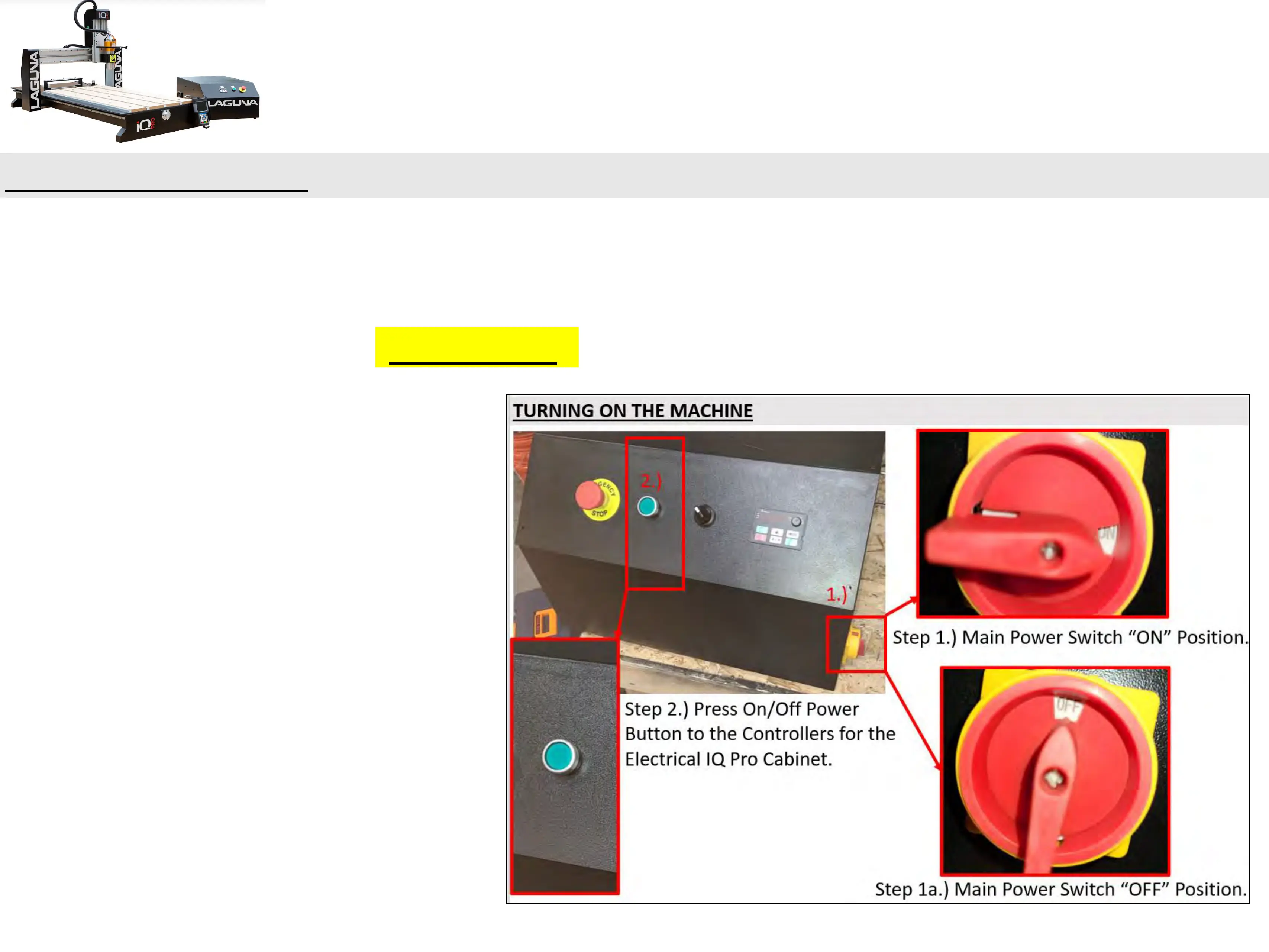 Turning the machine on, to starting ones program.
